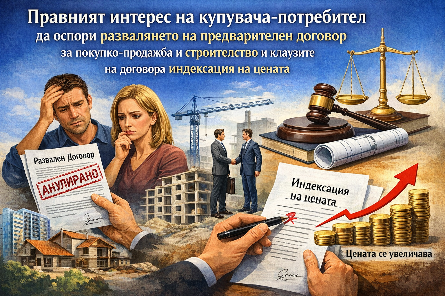 Спорът възниква по повод предварителен договор за покупко-продажба и строителство на недвижим имот, сключен между купувач и строител. Договорът съдържа клаузи, позволяващи индексиране на продажната цена в процеса на строителство на сградата.